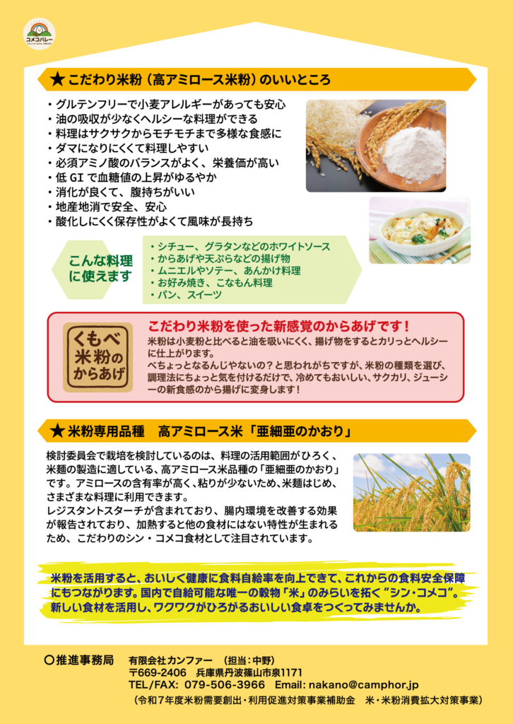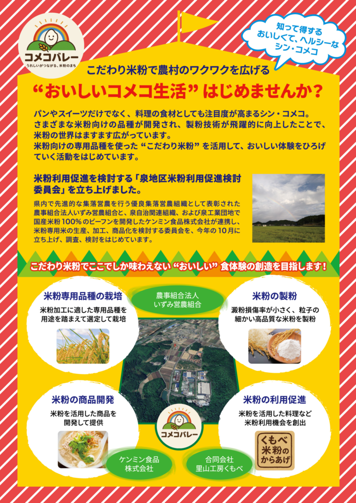 プロジェクト紹介チラシを作成しました 投稿日: 2025年12月5日2025年12月24日 投稿者: secretariat 地域での米粉利用促進を図るために取り組みを紹介するチラシを作成しました。Go EAST! さとやマルシェ 2025などで、地域のみなさまに情報発信していきます。