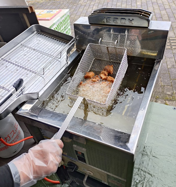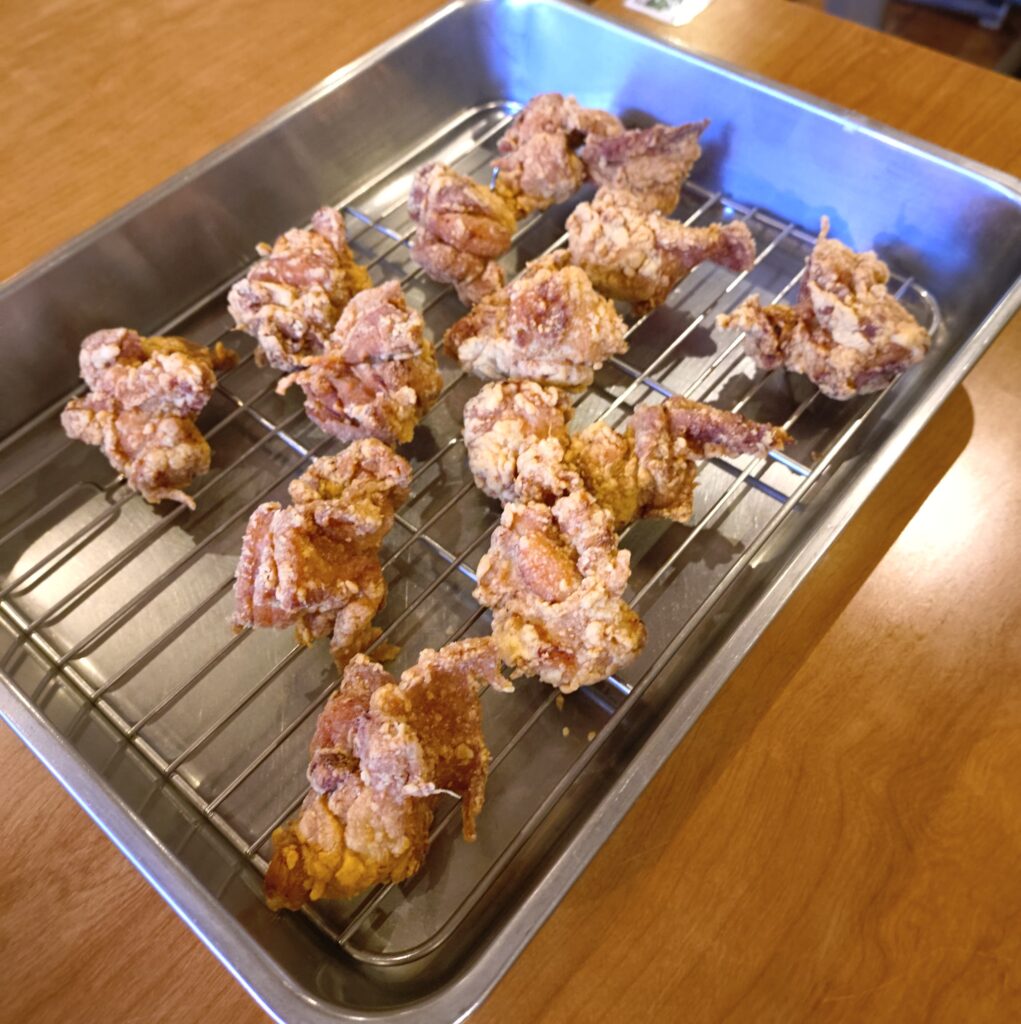 里山工房くもべ特製 「くもべ米粉のからあげ」 こだわり米粉を使った新感覚のからあげです! 米粉は小麦粉と比べると油を吸いにくく、揚げ物をするとカリっとヘルシーに仕上がります。 べちょっとなるんじやないの?と思われがちですが、米粉の種類を選び、調理法にちょっと気を付けるだけで、冷めてもおいしい、サクサク、ジューシーの新食感のから揚げに変身します!お弁当にもぴったりです。